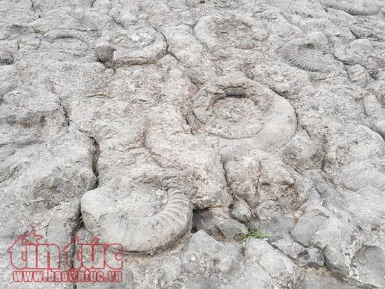 ![]() Vách đá vỏ ốc cúc khổng lồ, gồm 1.550 cá thể hóa thạch có tuổi đời hơn 200 triệu năm.